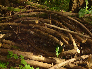 We live on about 6 acres - 4 1/2 acres of which are natural PNW woodland with all the usual flora and fauna... the rest consists of the house, a carport/workshop, and two sheds (potting and wood) and landscaped gardens. We have no lawns... got rid of them when we re-landscaped everything, and except for the deck and about 300sq ft of garden, nothing is level anywhere. Technically speaking we're a shade lot... no one spot gets more than 4 hours or so of continuous sunshine.